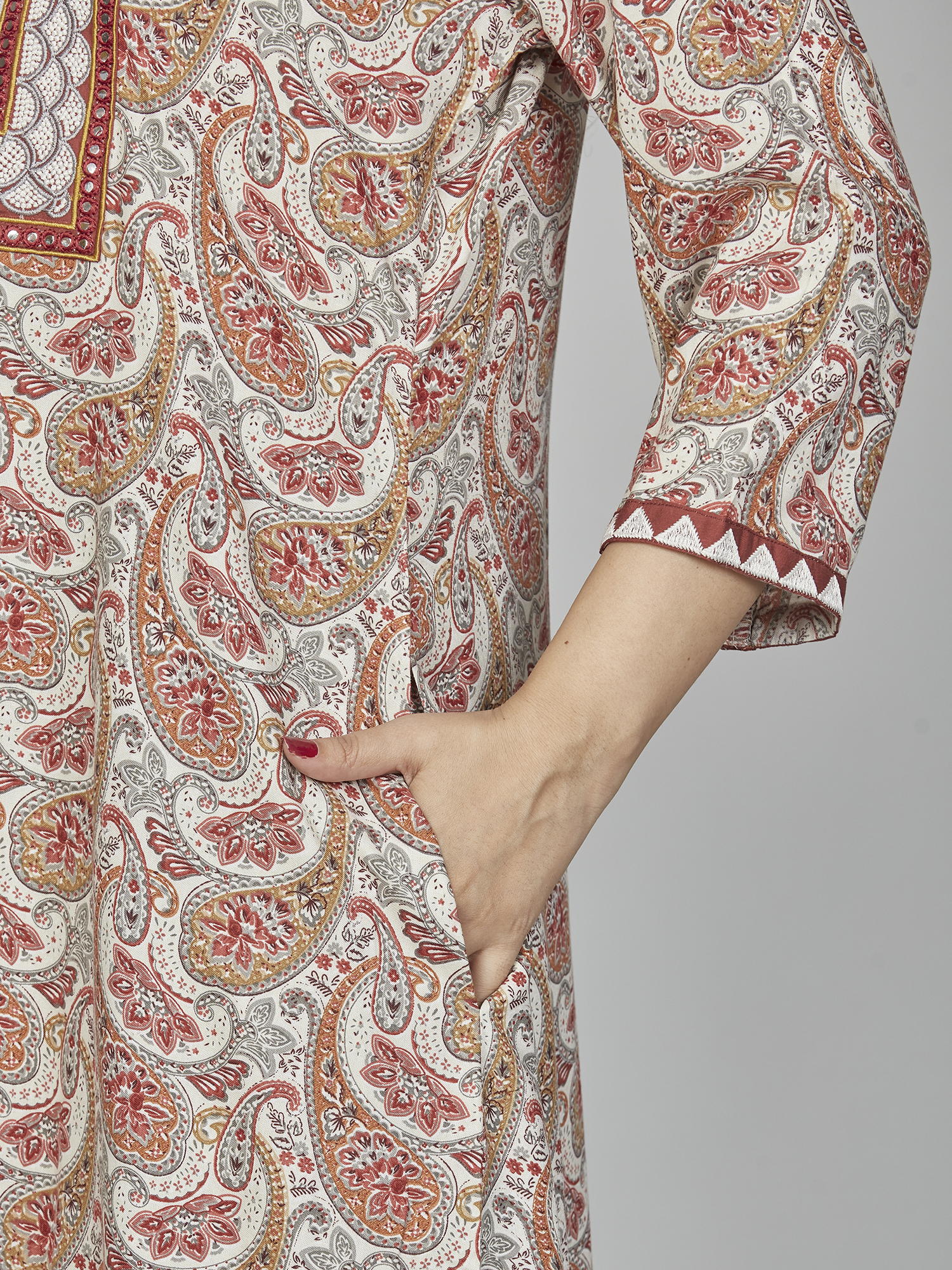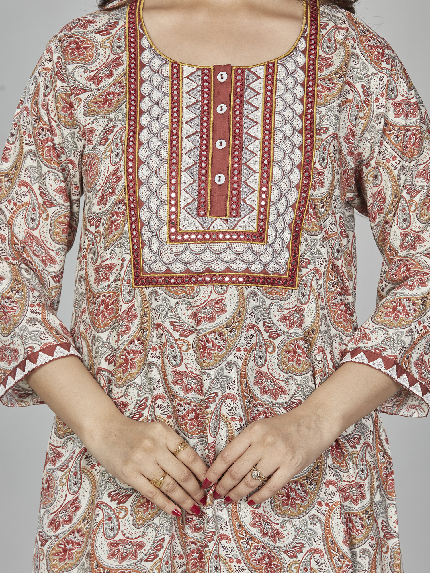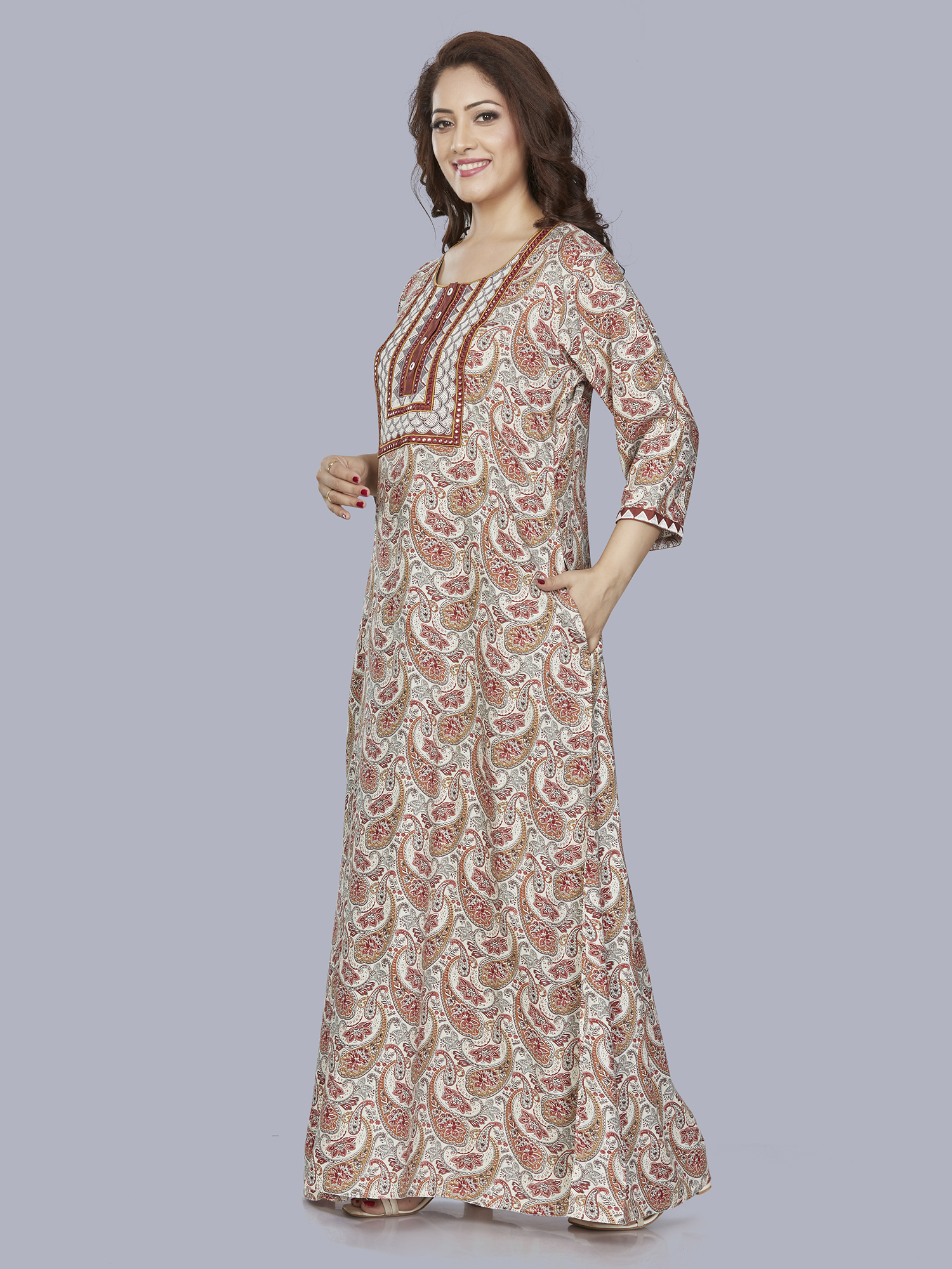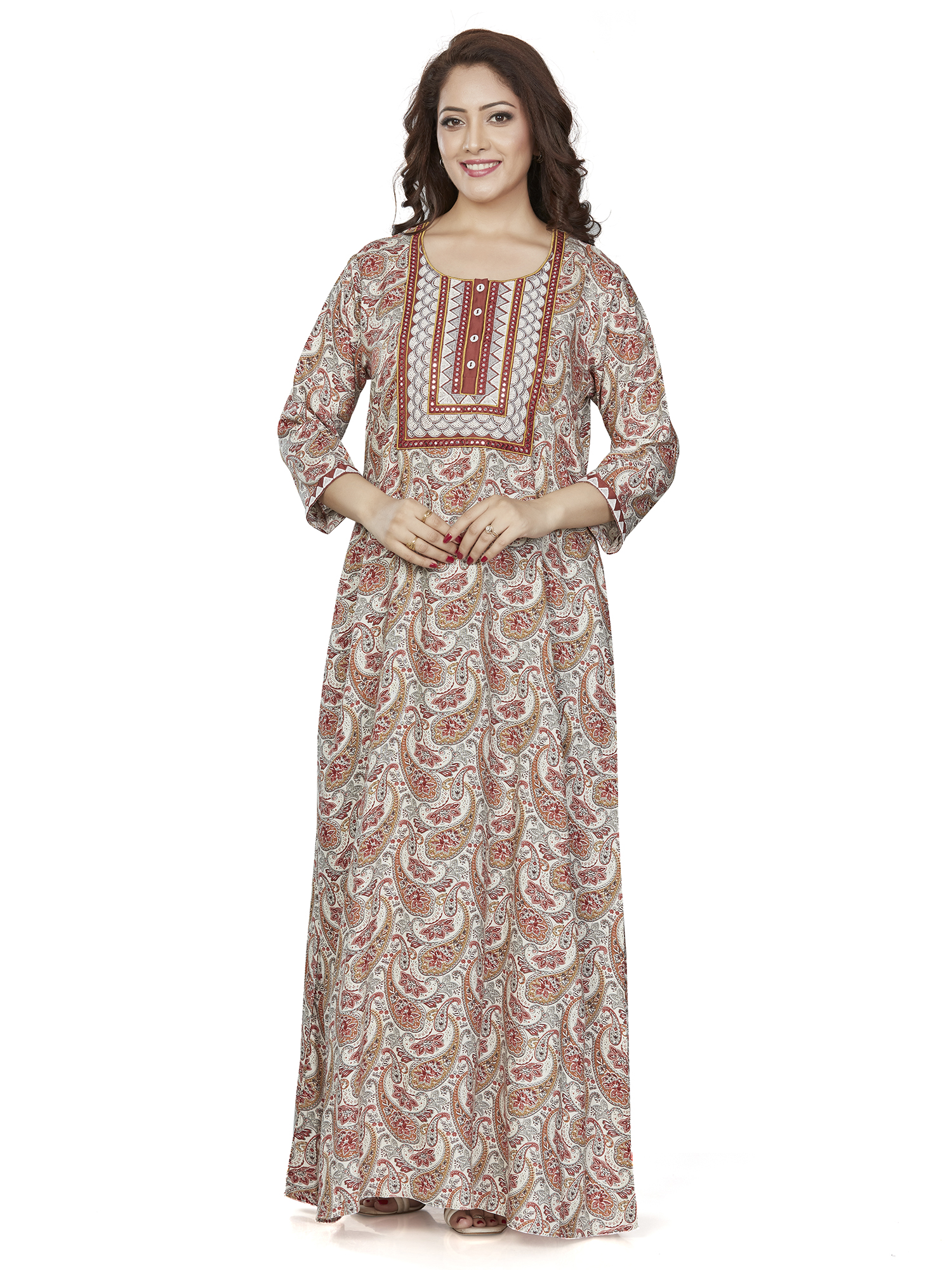 sanaa Fresh Arrival ! Women’s Solid 3/4th Sleeve Full Length Embroidered Nighty